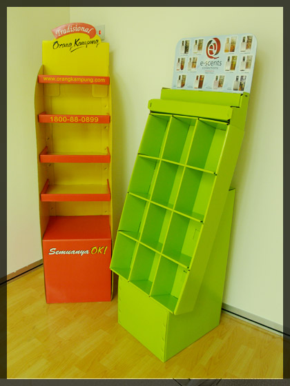 Customized corrugated box, point-of-purchase display units, pop material, display floor standee, table top/prepack/counter top, window stand, apple pies boxboard displays , PVC gift boxes, paper bags, hanging mobiles, folders, header board, , promo pack boxes, shelf violators, display cubes, flaglines, posters / shelf skirting, you name it, we can produce them for you!